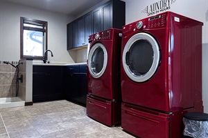 Lower-level wet bar with seating, dartboard and poker/game table. Lounge area with large sofa and 2 XL Big Joe bean bags for relaxing and watching movies.